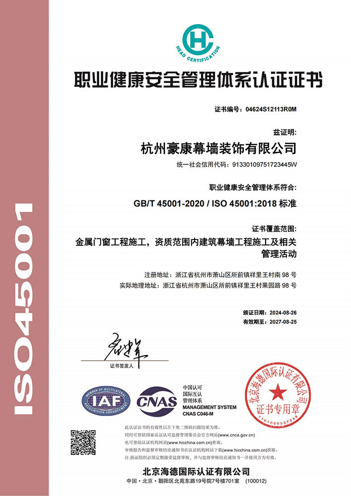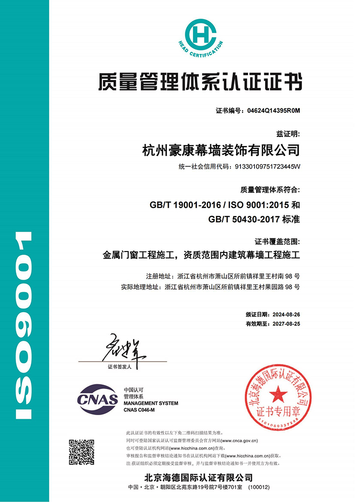 杭州豪康幕墻裝飾有限公司,是杭州市蕭山區(qū)生產(chǎn)幕墻及鋁合金門(mén)窗施工、工程設(shè)計(jì)、安裝施工、售后于一體的較早的企業(yè)之一。公司創(chuàng)立于2003年,原系杭州蕭山城廂浩康裝飾服務(wù)部,本公司其前身在該領(lǐng)域,如鋁合金門(mén)窗、幕墻、塑鋼窗、鋁合金室內(nèi)外扶手、制作及現(xiàn)場(chǎng)安裝等有近十多年的業(yè)績(jī)積累。企業(yè)現(xiàn)具有建筑幕墻工程專(zhuān)業(yè)承包壹級(jí)資質(zhì)......